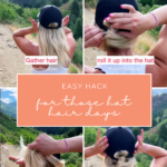 It also works to pull the hair all the way through, letting the ends hang out if you want! Hopefully you’ve figured out this simple hat hack for your hair from these 4 steps, but you can also see it done right here on my Instagram! It will probably make a lot more sense after seeing it too.