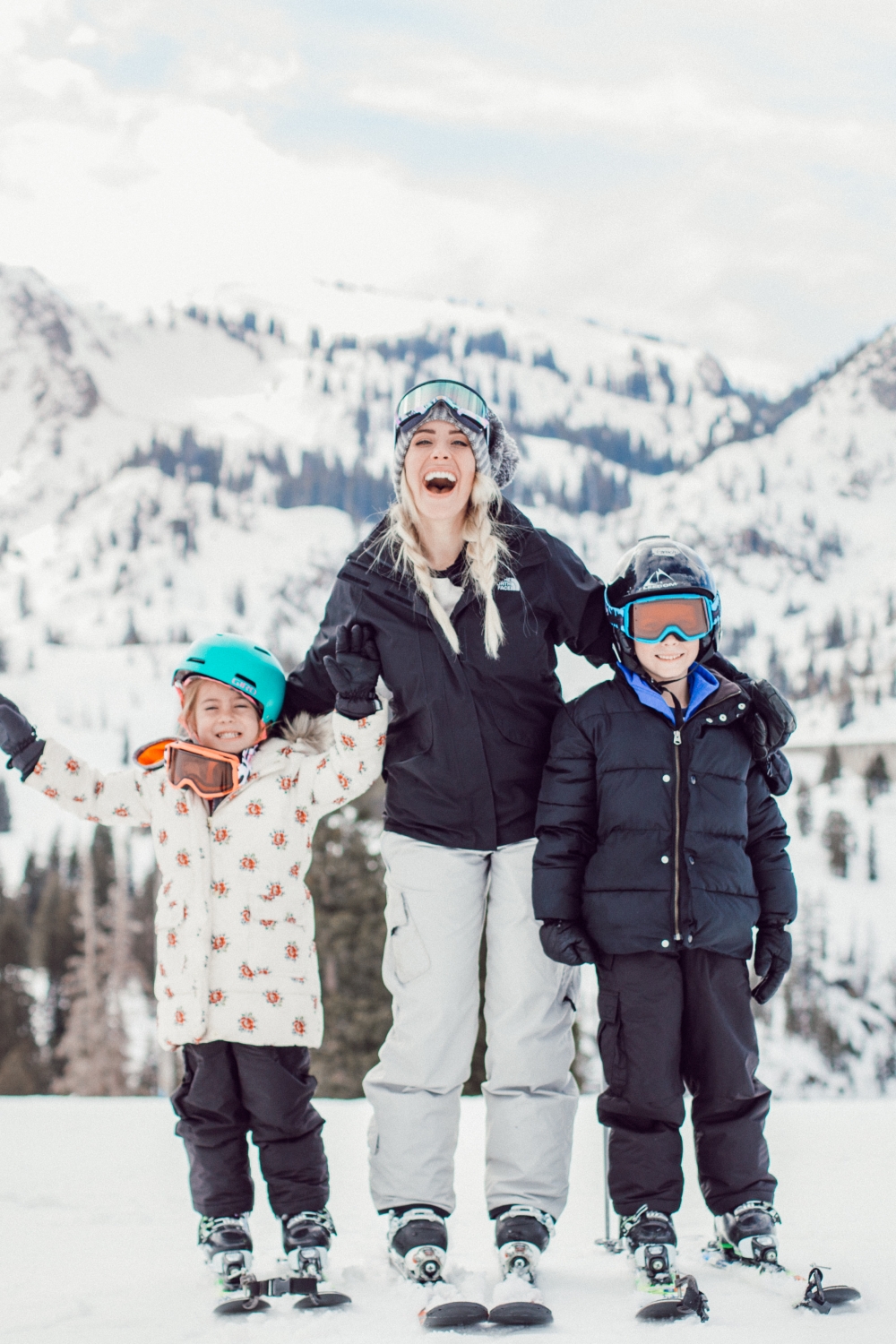 Back in March we took the kids to Brighton Ski Resort for some Spring Skiing!!! The weather was PERECT! I was born and raised in the beautiful state of Utah. I started skiing with my family when I was 5 and it became a huge part of my life growing up. I had season passes to all the best resorts and would go every weekend in the Winter with my friends in high school. It was the life! Then I moved away to college, I got married, had kids, moved away from Utah and hadn’t been back since. Brian didn’t grow up skiing so it hasn’t been something he’s really cared to do but now that I’m back near these gorgeous mountains, I’ve just been so homesick to get back on the slopes! And when you live in Northern Utah… you ski! It’s like growing up on the beach in California and never learning how to surf. I knew for sure it was time to take the kids and teach them one of my favorite past times!
