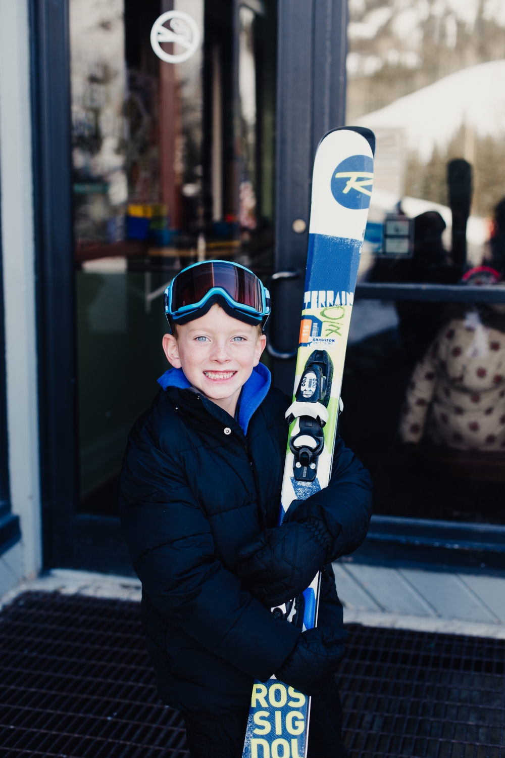 Then you’ll get your tickets and head up stairs to rent your ski gear. If your kids have a lesson scheduled, one trick to bypass the lines is taking them to the Snow Sports School first. Then an instructor can help them get outfitted in front of everyone waiting! BAM. You can thank me later. Usually the lines aren’t bad though, but if you go on a Saturday it’s a good trick to have up your sleeves when you’re running late.