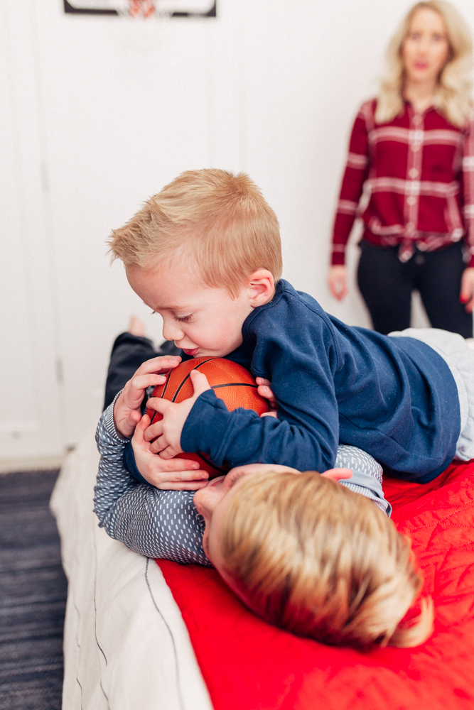 You can’t see this very well but Kelsey found this awesome mini basketball hoop from Amazon that hangs over the closet door. The boys LOVE it.