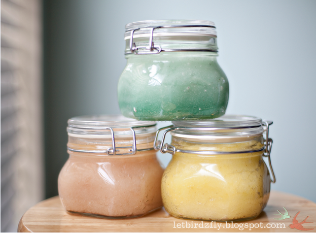 As you probably already know, scrubs are amazing exfoliators. They smell de-lish and are great for your skin. I’m in love with these scrubs from let birds fly. Easy enough recipe and they would make PEFECT gifts!