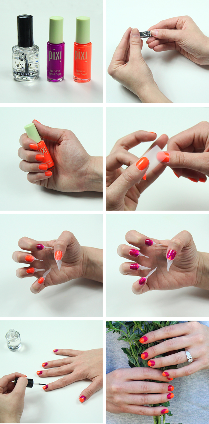 Step 1 / You will need:: Oh So Orange and Very Violet Pixi Polishes and Seche Vite Dry Fast Top Coat (best ever)