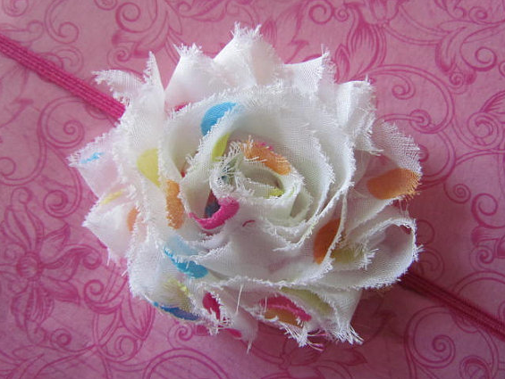 The shabby rosettes are so cute. I like the polka dot, spring green, and bubble gum pink headbands. My daughter wears one of these colors daily.