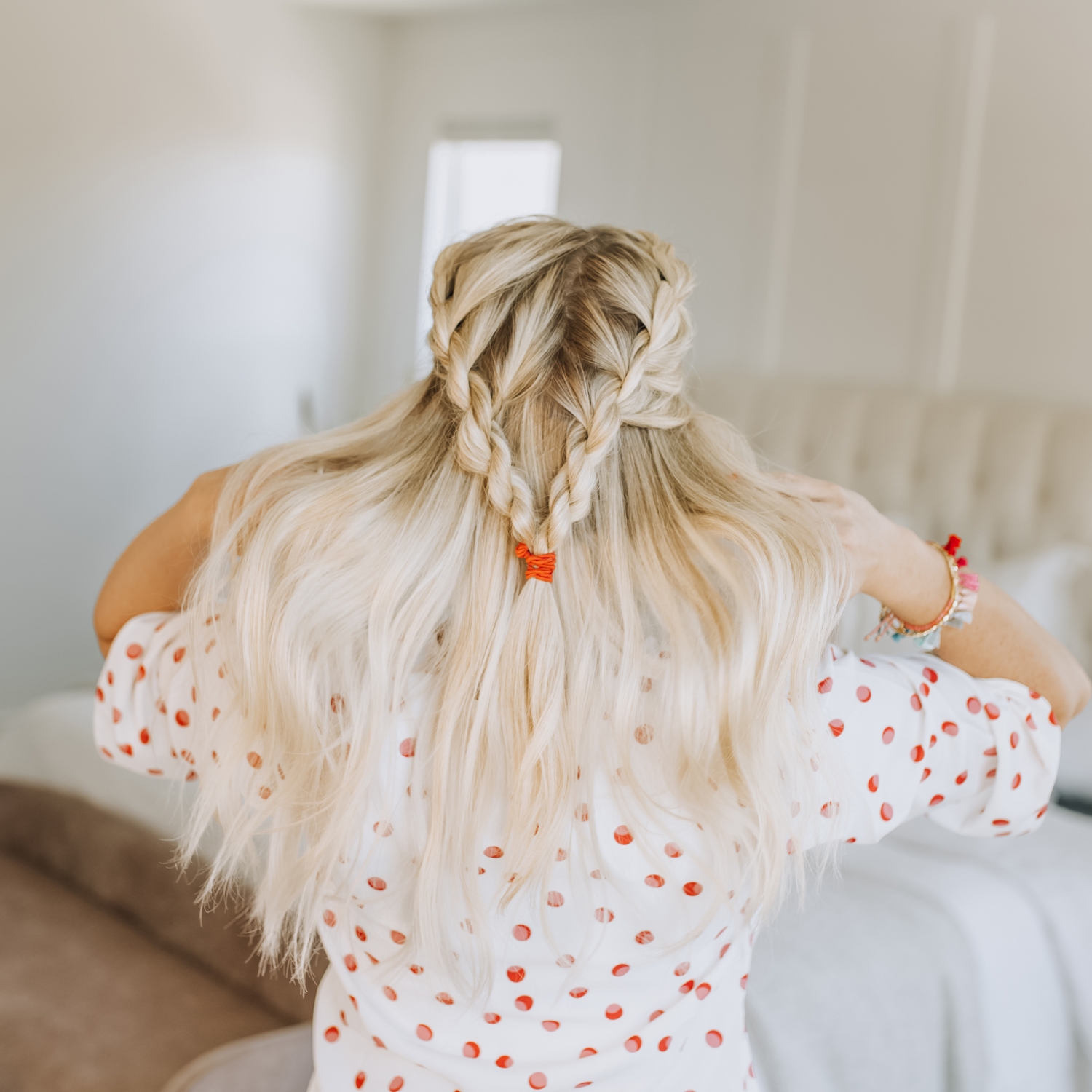 What’s up, loves?!!! I’m so excited to share one of my absolute favorite summer hairstyles with you today! These summer twists are amazing because they pull your hair out of your face so the wind at the beach or on a boat doesn’t bug + they look super cute when styled wet and right out of the pool. If your hair dries a little crazy like mine when it air dries, pulling it up into a ponytail or bun is another option because it looks cute that way too! I swear, this hairstyle does it all!