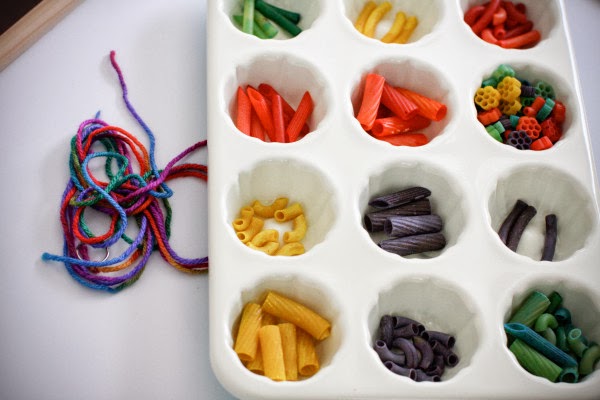 We’ve just thrown all the pasta in a bag with pipe cleaners instead of yarn. It makes it easier for Savy.