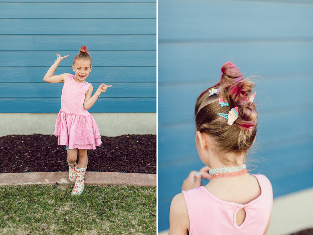 Goodness gracious, we’ve been so excited to share this post with you! There’s honestly nothing I love more than getting creative with my little Savy girl! First things first, have you heard of the show Sunny Day? Oh man, it’s the cutest cartoon on Nick Jr about a 10 year old hairstylist and salon owner. She’s bright and bubbly and problem solves throughout each episode with a cheery, can-do attitude. I mean, I don’t want to point out the similarities here buuuut… Hairstylist. Blonde. Entrepreneur. Loves the color pink. Is unusually cheery and optimistic. I feel like I might have finally found my doppleganger ? and I may or may not binge watch it with Savy after school because it’s that cute! You can watch Sunny Day weekdays on Nickelodeon!