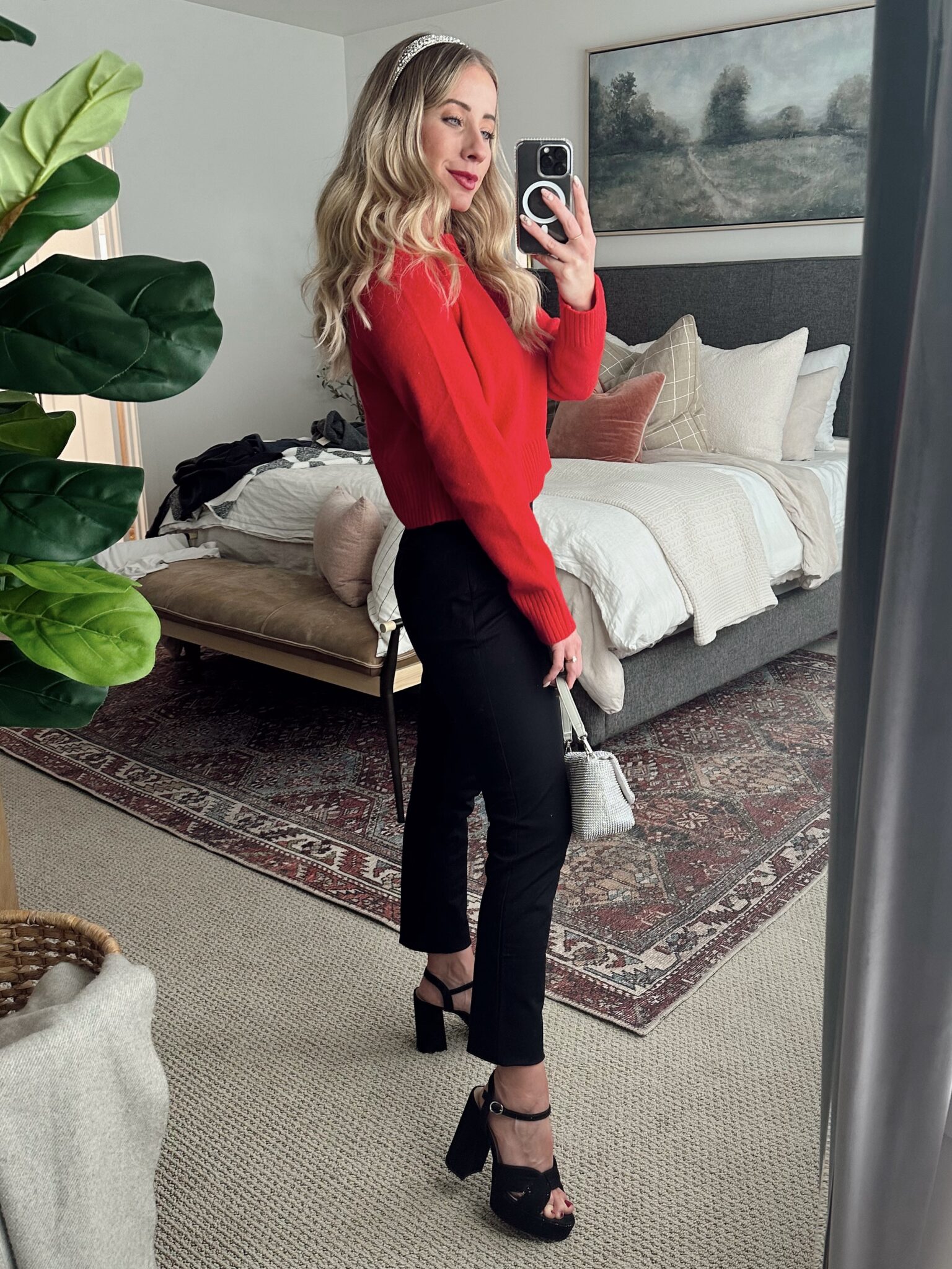 These sweaters are the literal SOFTEST EVER, and I love that these pants are office ready but perfect for a party too! You could also add some basic sneakers with the cropped pants, to dress the outfit down a bit while keeping it holiday vibes!