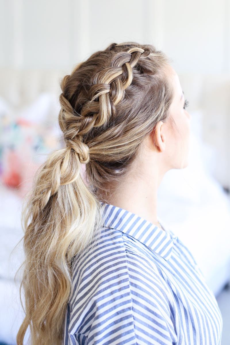 3// Continue braiding down and when you reach the back finish off with a three strand braid.