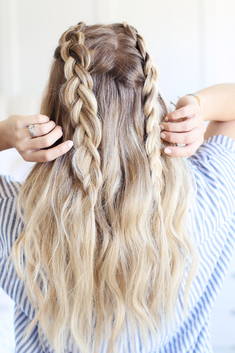 Lately I’ve been obsessing over this braided hairstyle, isn’t it pretty? I wore it a bunch last week and several of you asked for a tutorial — so here it is. In all it’s texturized glory ??! It’s super fast and easy to style + the dutch braids keep your hair out of your face so it’s great to wear with the kids or if you have a busy day ahead of you at school or work. I’ll let you be the judge of when/where to wear it but it would make the prettiest hairstyle for Mother’s Day… just had to throw that one out there ?!!