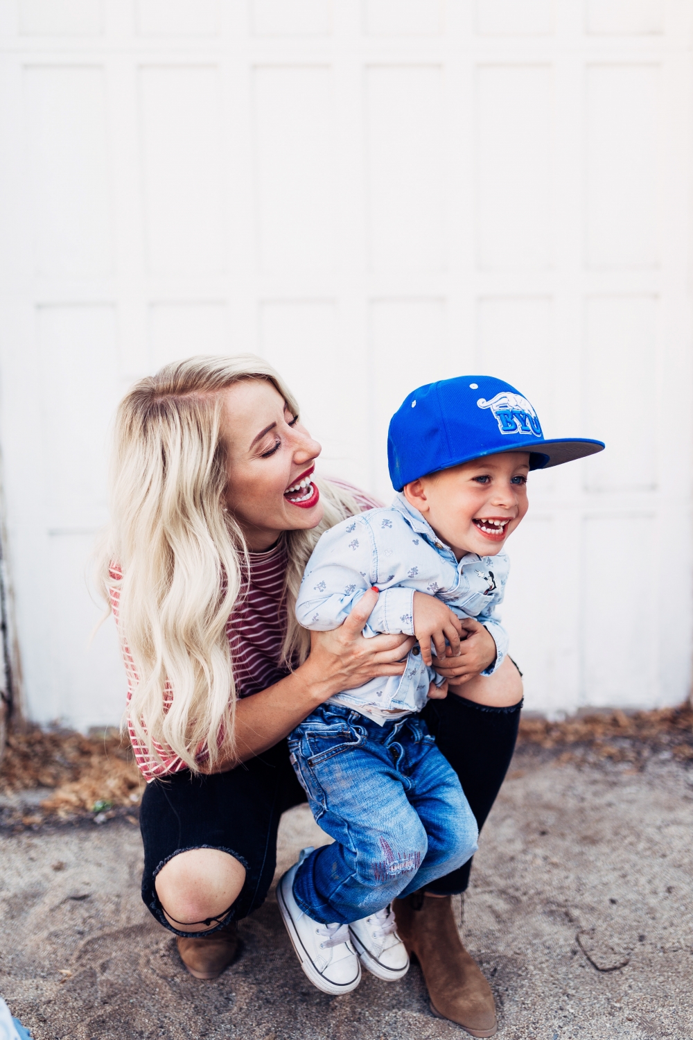 Mister Coop hurt his little front tooth and it started to turn grey. Naturally I freaked out because… IT’S HIS FRONT TOOTH AND LOOK AT THAT PERFECT SMILE!! I immediately took him to the Dentist, they x-rayed it and apparently his tooth is fine. The dentist said only time will tell on how the tooth continues to react but it could go back white, get darker, fall out, who knows! So our fingers are crossed it doesn’t get worse but his tooth seems to be fine thank goodness. Poor boy though, must have hit it good on something and we didn’t even know! Have any of your kids had a tooth die? TELL ME EVERYTHING!
