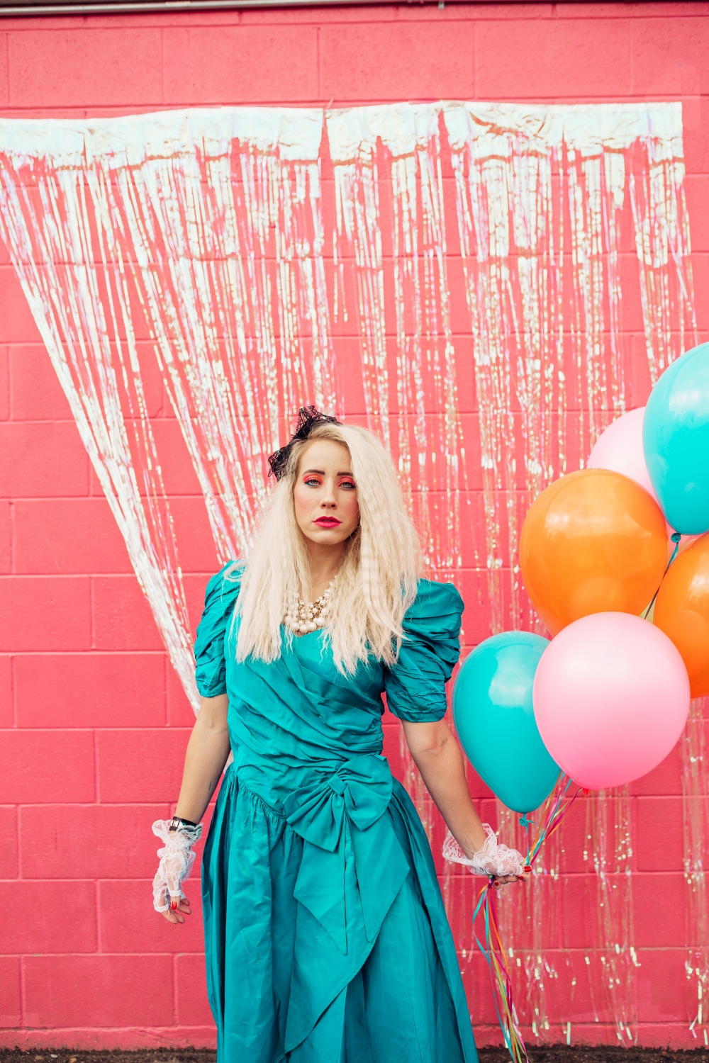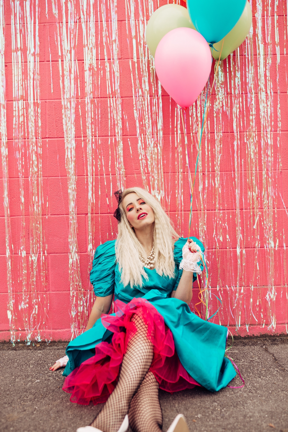 “Because I am living in a material world, and I am a Material Girl”. Such a fun costume and the balloons were a really easy prop to get. Although they can be kind of a pain getting into cars!