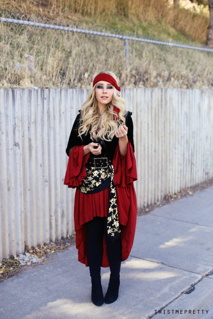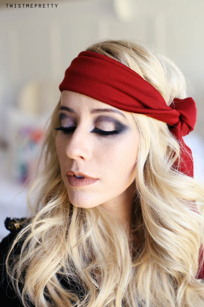 Welcome to the ultimate pirate costume, complete with makeup tutorial, bouncy curl how-to and of course the classy Halloween costume! After a couple of pretty intense tutorials, I thought it’d be fun to mix it up and share my take on a classic favorite. What do you think?! It’s definitely a fun eye look and one that can be worn throughout the rest of the year with a few slight tweaks!