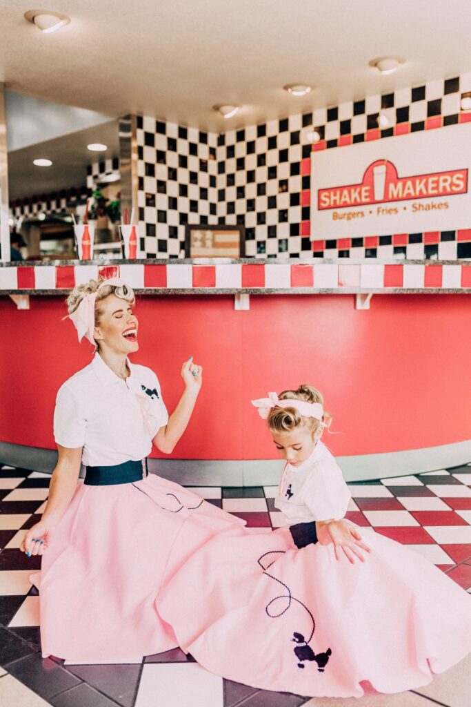 This is a GREAT last minute halloween costume. All you need are black pants and black t-shirt, that bold red lip and the fabulous 50’s hairstyle you’ll be lookin’ fly in no time.