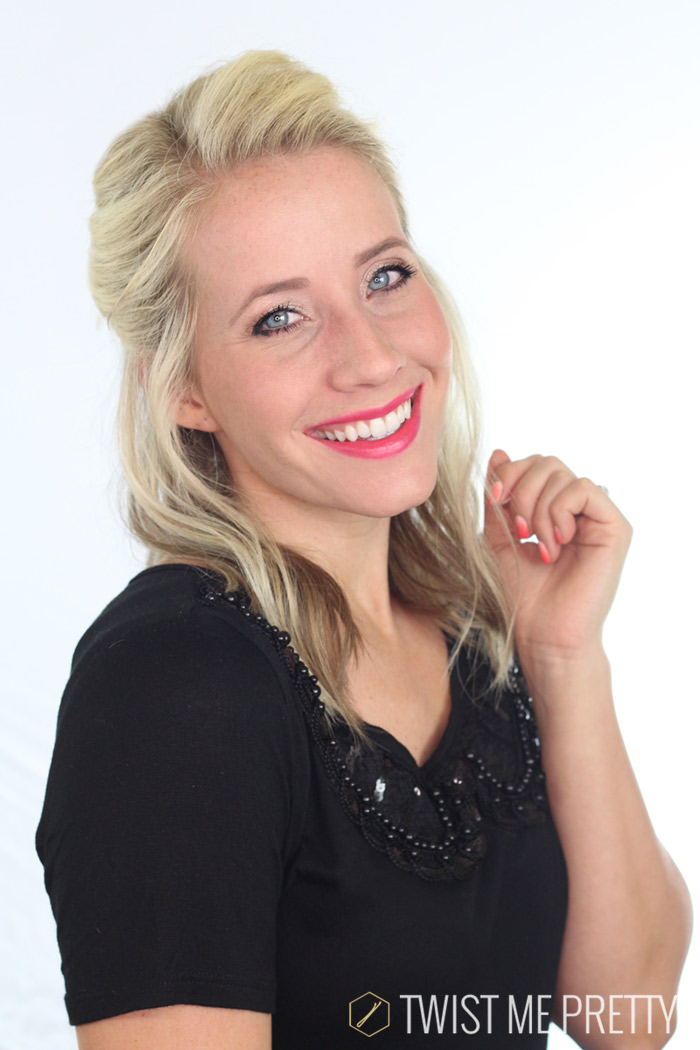 This hairstyle is really cute and looks really versatile. I think it would look really great with just holding back one half of your hair too.