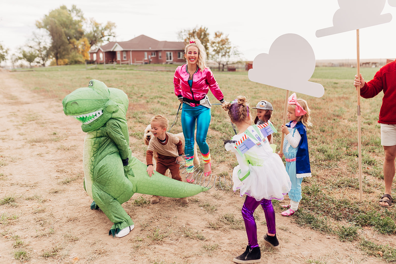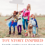 To infinity and beyond! This year’s family halloween costume theme was so much fun to put together! Now that there are more of us, it’s getting trickier to find a theme we can all participate in. But that’s ok, we just need to get more creative as the years go on. I love the characters from Toy Story, and the message that the movies share with everyone. Plus, who doesn’t dream about being Barbie for a few hours? Here’s our Toy Story family Halloween costumes.