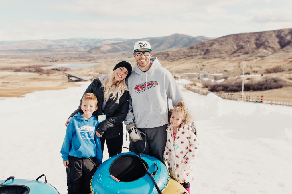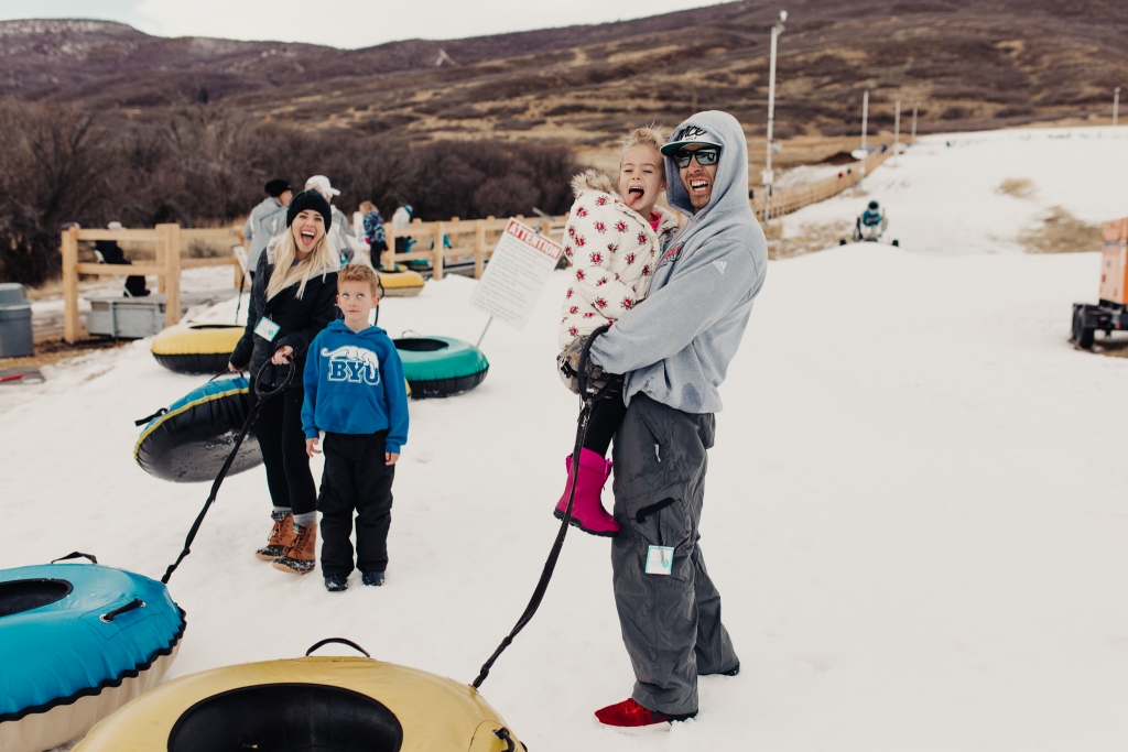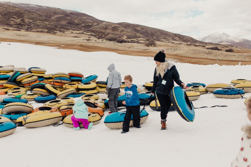You can watch our vlog here to get more of an idea of what it looked like. You’ll notice towards the end we were just shedding layers! It was such a warm day and all the movement getting up the hill was making us crazy hot. Hopefully this post gives you a better idea of what to expect if you go tubing at Soldier Hollow. I’d for sure take my little 2.5 year old twin boys and just take turns watching them at the bottom. They would have loved playing in the snow. I thought this was a great activity because there was literally no skill level required, so the kids had a blast and there was zero pressure. We’d go again in a heart beat!