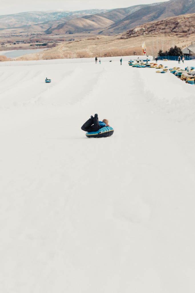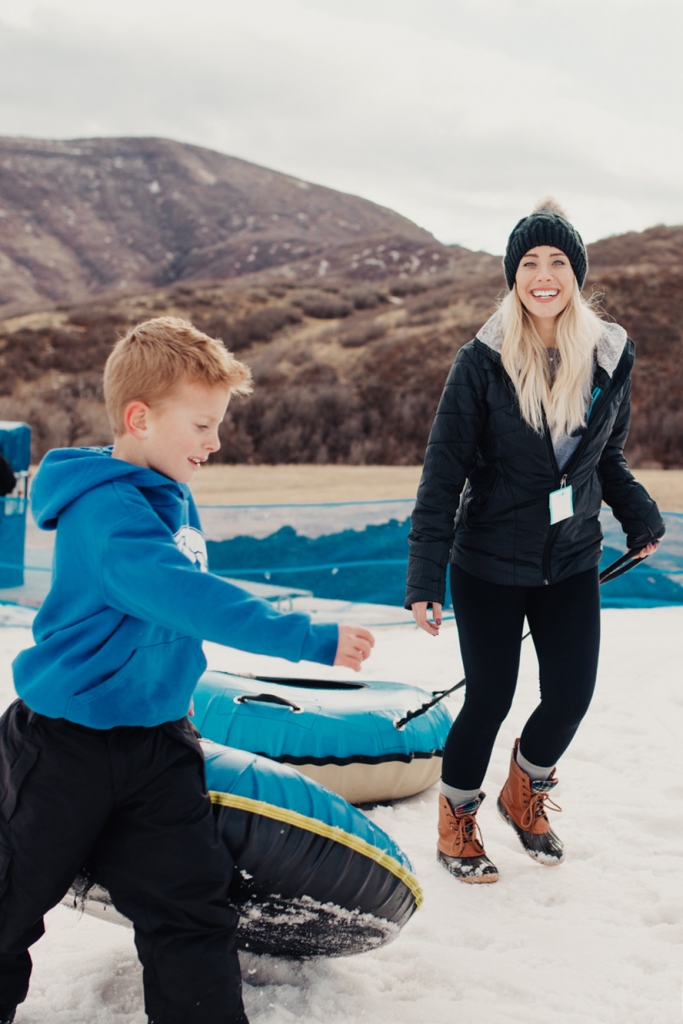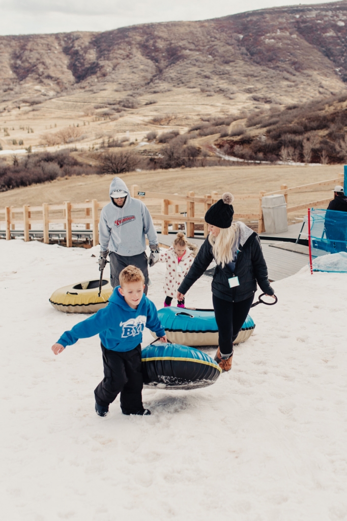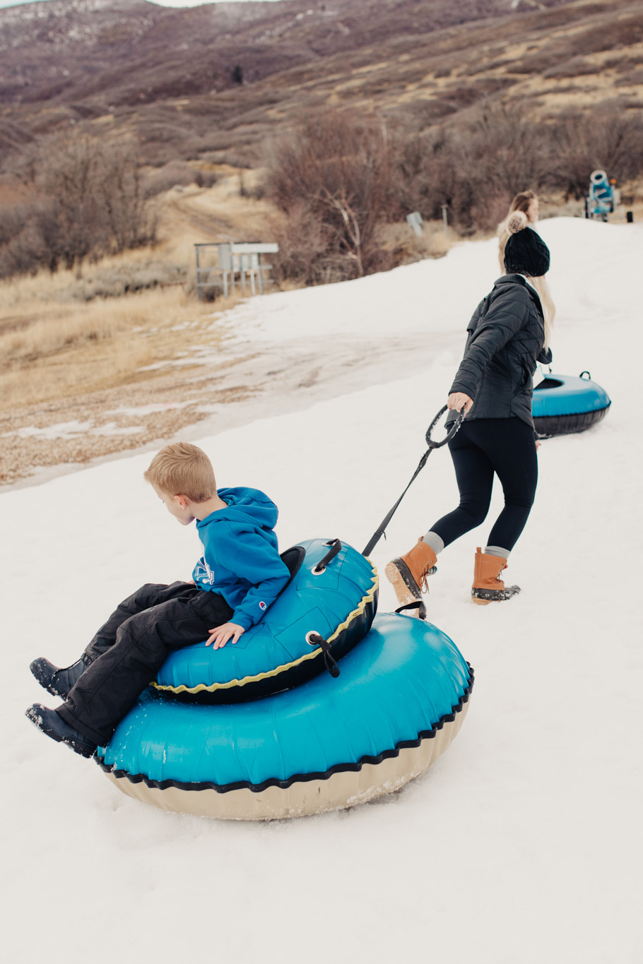 Was it worth it? It was REALLY FUN and I think it was well worth the money, but the slopes weren’t as steep as I thought they’d be. I was expecting an experience similar to the hill you tube down at the Olympic Training Center (watch our vlog here) which is crazy fast and definitely not appropriate for kids. The weather here in Utah right now is pretty ridiculous. It’s in the 50’s, we’ve had hardly any snow and so everything up on the hill was man made. I think it made for slower speeds and at times Boston got a little frustrated cause he’d have to keep jumping off his tube mid ride to get himself going again. If finances are an issue, my suggestion would be to wait for the good Utah snow and maybe you’ll see faster rides? But it was still fun, and such a great experience for us!