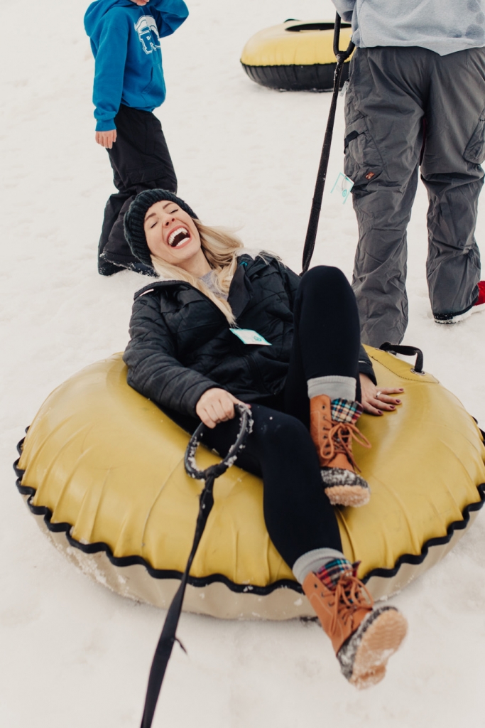 Can you take toddlers? Technically no. The issue is that riders cannot double up. My twins would have for sure jumped out of their tube, or not gone fast enough to make it down the hill. The employees weren’t paying any attention to us though and we rode several times with Savy on our laps. So you could maybe get away with it? We thought of taking the twins and letting them play in the snow at the bottom of the hill while Brian and I took turns tubing down with the big kids, but we just weren’t sure what the space looked like and if there was room. There was definitely room at the bottom of the hill to hang out, build snow men, eat lunch haha, so taking the boys (2.5) and letting them play in the snow while we took turns definitely would have worked and that’s what we’ll do next time.