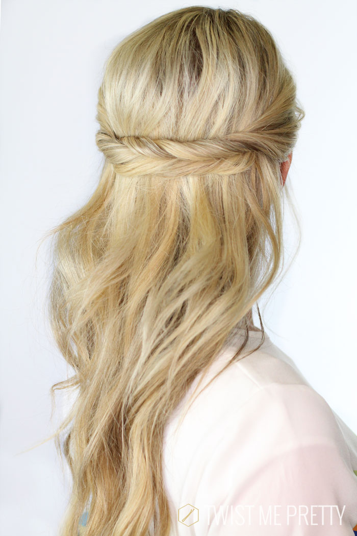 - Lay twist across crown and secure with bobby pin