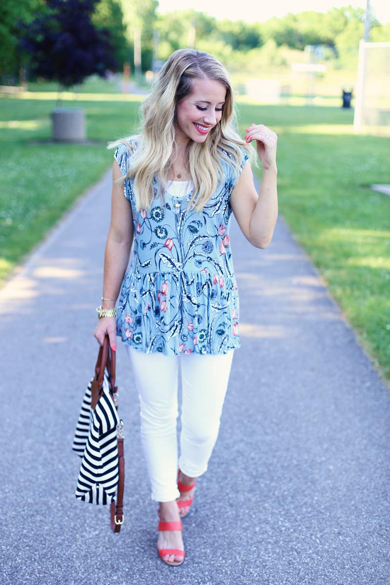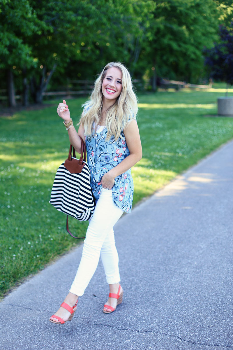 TOP: hinge flutter top sold out. Similar here, here, here, and here! Ha ha! | Jeans: Gap | Sandals: Sole Society sold out. Similar here, here and here | Bag: Sole Society, similar here and here | Necklace: c/o Bip and Bop + Made By Mary | Watch: Michael Kors | Rings: Wanderlust Co | Midi Rings: American Eagle | Bracelets: Wanderlust (my favorite!) + American Eagle