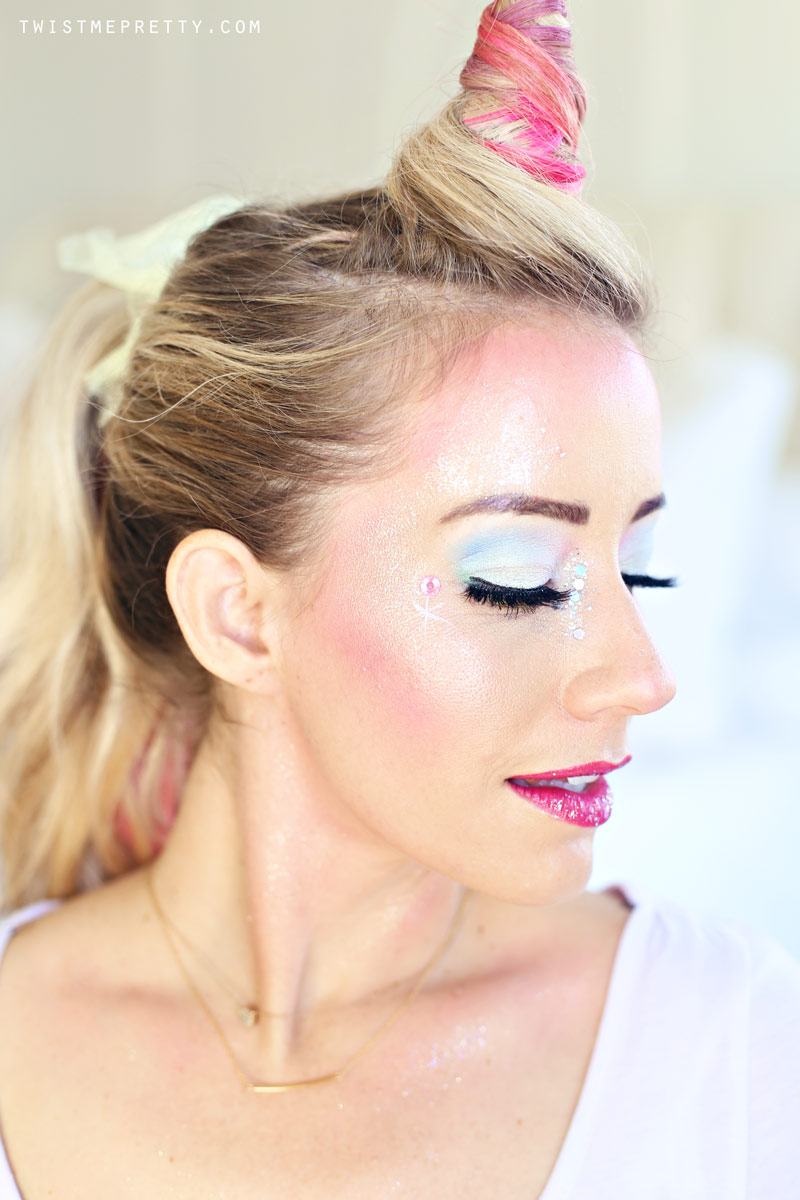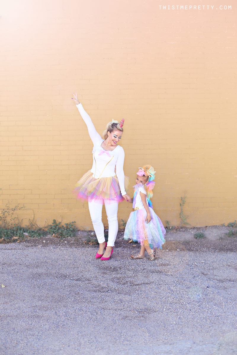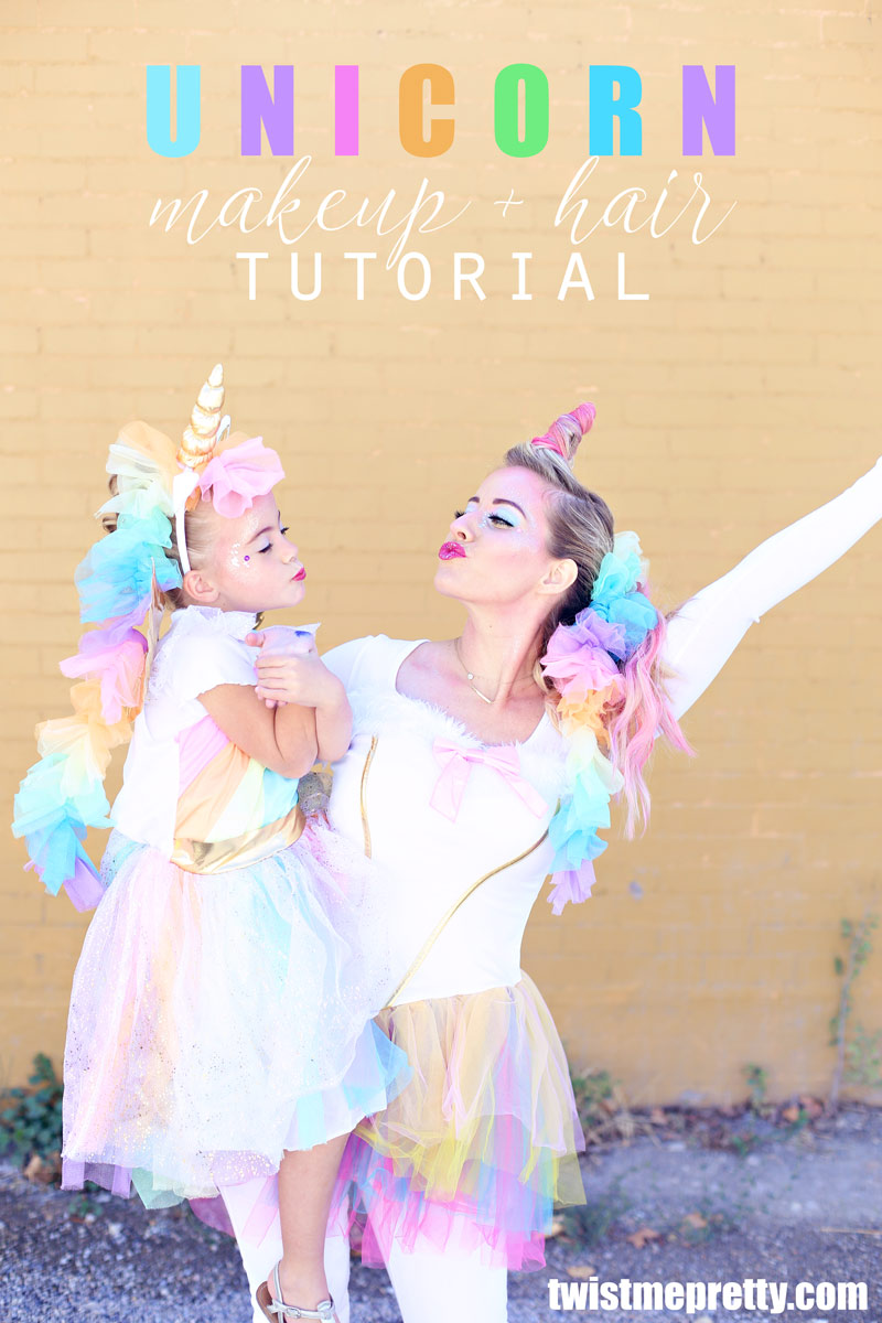 To kick off my favorite month of the entire year, Savy girl and I transformed into UNICORNS?!! I probably spent 127 hours playing with different looks (I should post some of my late night faces that didn’t make the cut ha ha) and searching for the perfect costumes. Do I buy a horn or do I make one with hair? What you see below is hours worth of researching the perfect products and playing with different ways to apply it all, so hopefully this tutorial speeds up the process for you at home and you can turn yourself or your daughter into the perfect unicorn this Halloween!!!