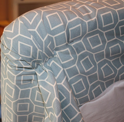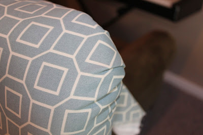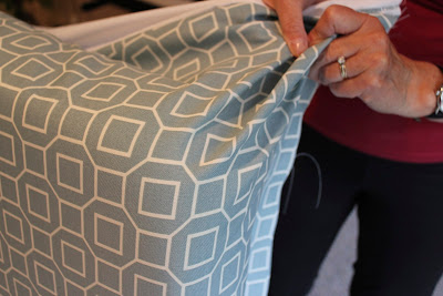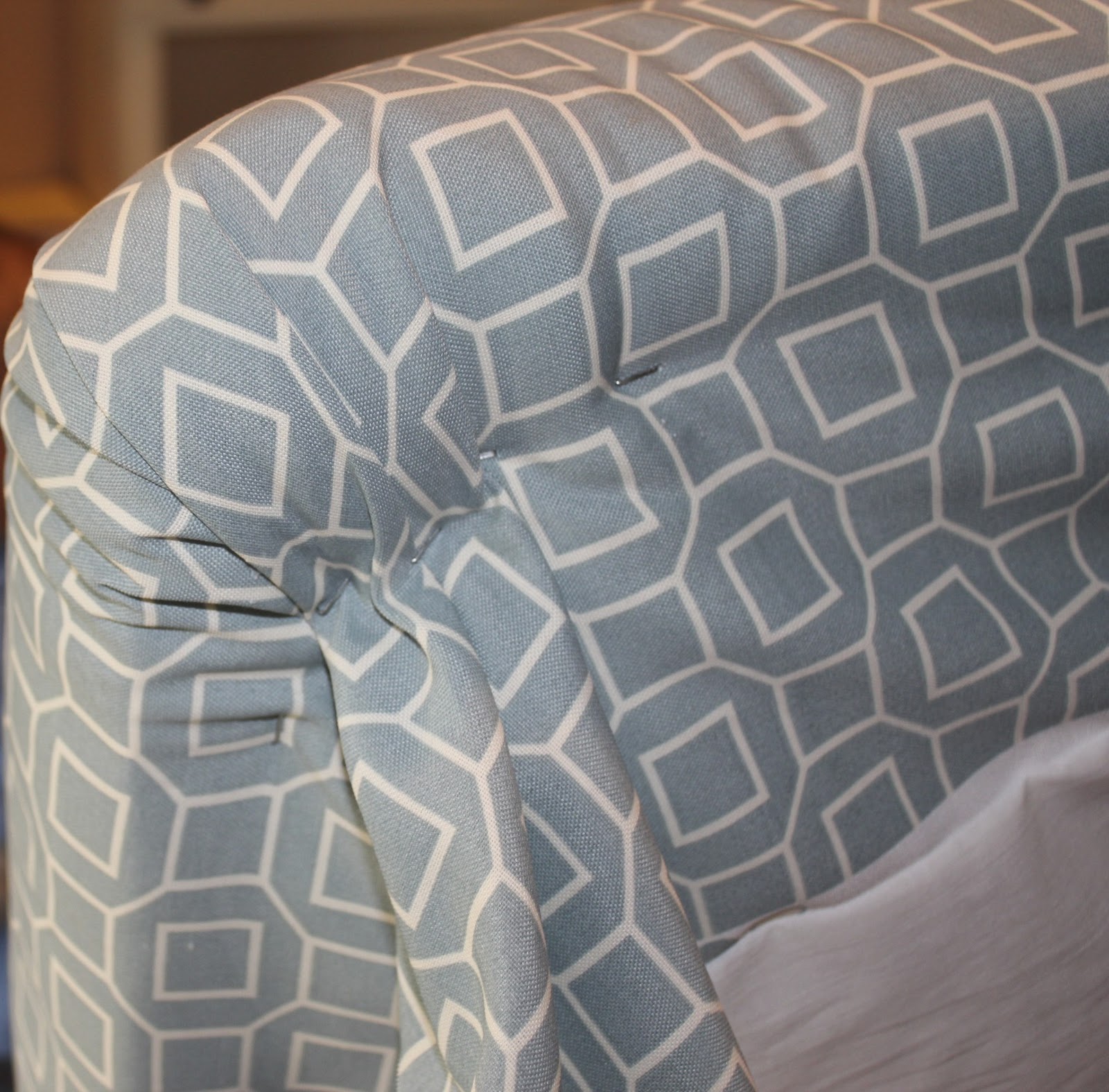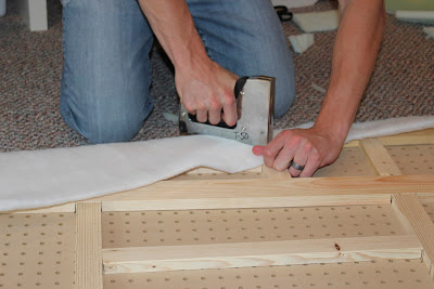 This next part was tricky. I chose a geometrical pattern. It needed to be level horizontally and vertically which made this part so hard! You just tug and tug, staple, pull out staples, staple again until you finally have it right!