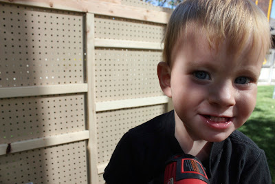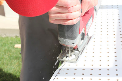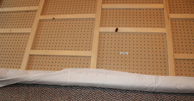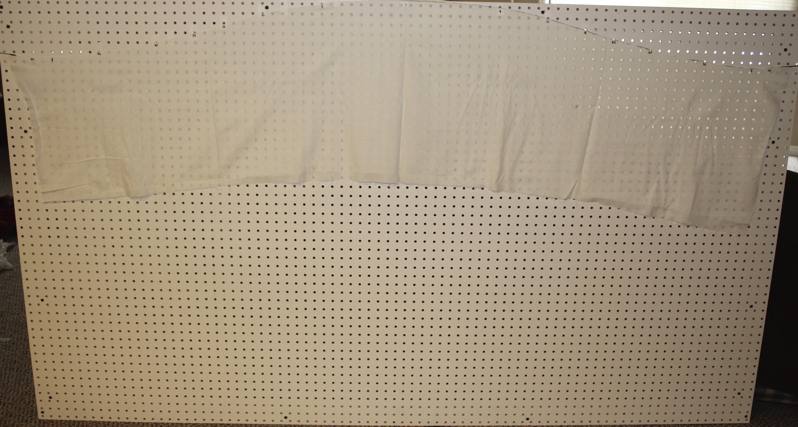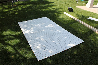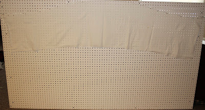 First cut your peg board to size. We just got a new sleep number bed, which I LOOOVE. And we figured a good size for a headboard would be 84 x 48. Those measurements should work for any standard king.