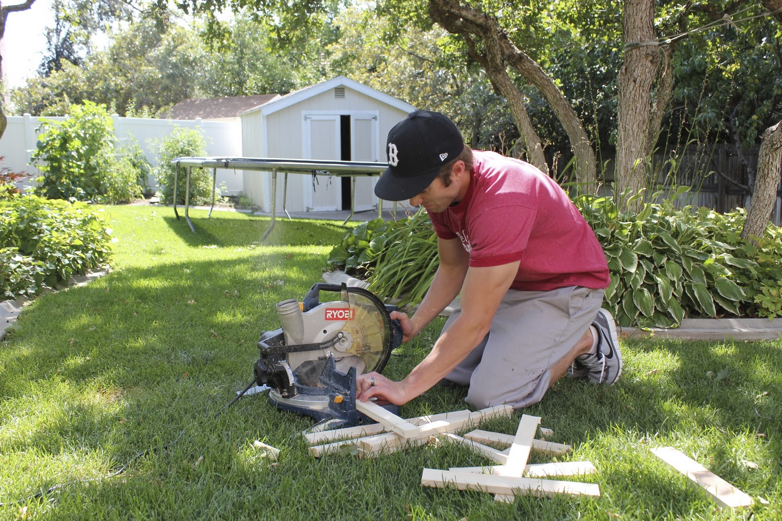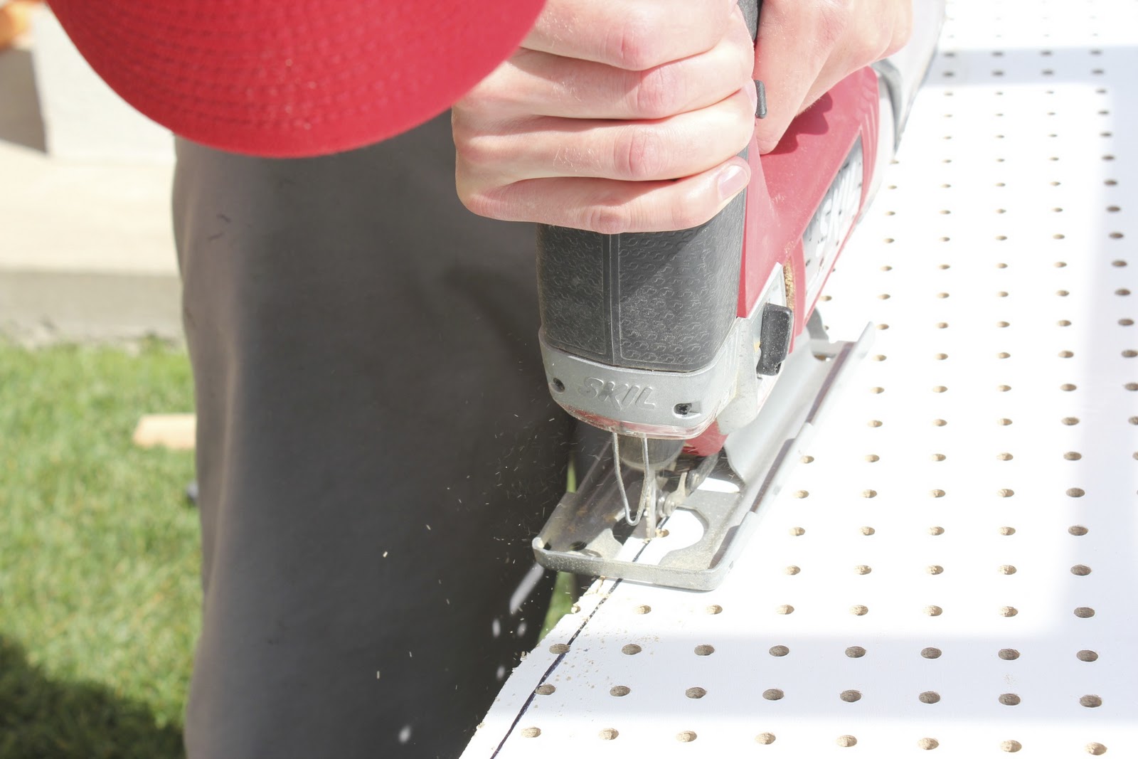 - A jig saw, a compound mitre saw and some saw horses. Borrow from a neighbor. Neighbors have everything!