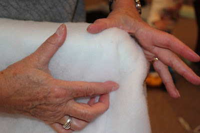 Next we laid out our fabric, found the center and stapled it to the center of our board