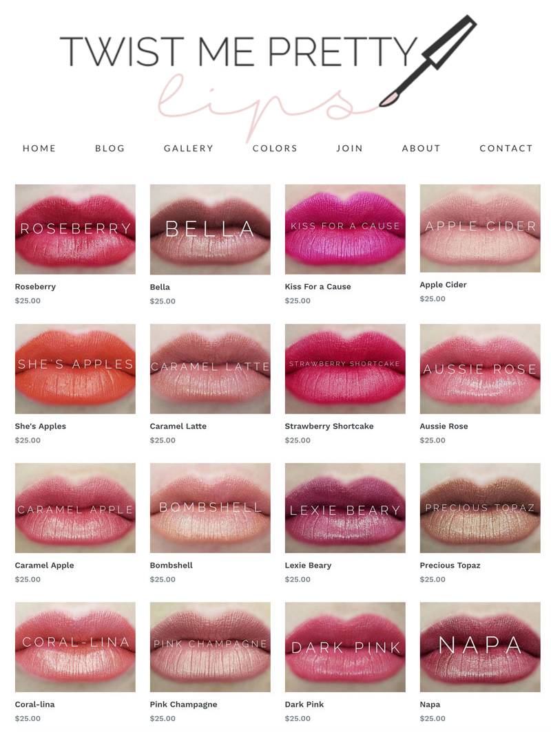 Option #2: You can order through my personal stock! This is a great option because I typically sell the product at a discounted rate. All you need to do is choose the color/products you want by going through the product list on my website here and then just send me an email with your selections (twistmeprettylips @ gmail.com). I can also help color match you and answer any questions you have. If you join my private facebook group you’ll find live videos of me demoing colors, how-to videos and also what colors I’m recommending for others!