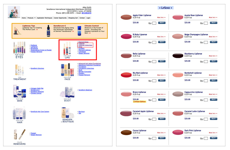 Option #1: You can buy it from my Senesite. SUPER easy. You don’t have to talk to anyone, deal with anyone, you can checkout online right away and you’ll even get a confirmation email so you can track your order. You can shop all the colors that are currently in stock and you don’t have to rely on any distributor’s inventory. BAM. This is what the website looks like below… definitely not my aesthetic but I promise it’s legit! You’ll simply hover over to lips and then click on LipSense.