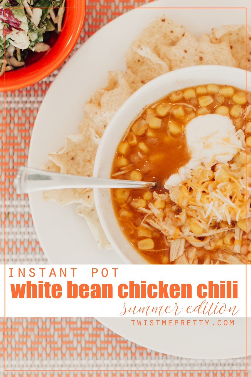 WHITE BEAN CHICKEN CHILI — SUMMER EDITION! Okay loves, I’m back at it with the instant pot and still working on my goal of finding quick, easy, and healthy recipes. Today I’ve got a super yummy one for you from Eat.Drink.Love! This is one of those meals that takes you five minutes to get everything put in the instant pot and voila! in under one hour your dinner is ready!