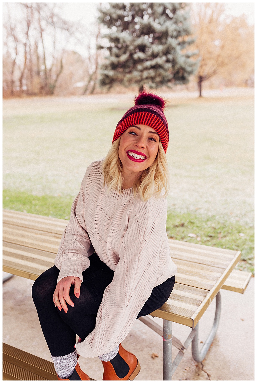 This collection takes the warm tones of my fall collection and adds lots of knits in the form of sweaters and beanies, and socks… Oh my!