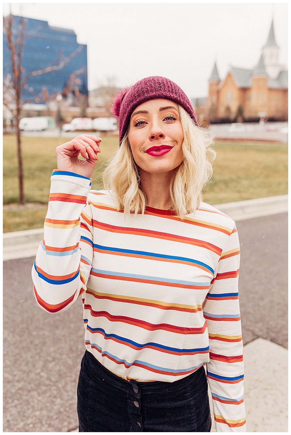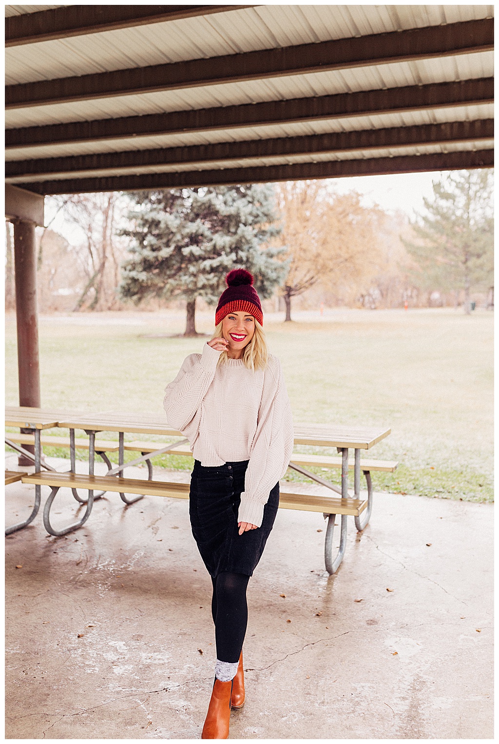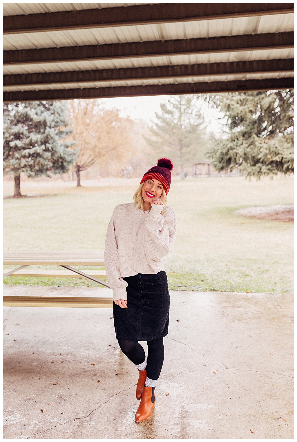 I love the trend of “tonal” dressing, which is where you match these earthy tones in a few pieces you are wearing. For example, a cream sweater and a cream sock. A burgundy shirt and a burgundy hat. A camel skirt and a camel boot.