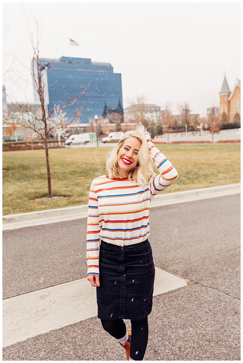 If you are someone who loves winter and sweater weather (or if you hate it, ha!) but you want to hold on to a little summer style, it’s a great trend to add skirts and dresses to your winter wardrobe styling! Adding an unexpected feminine touch to your winter layers is a fun and whimsical way to hold on to summer.