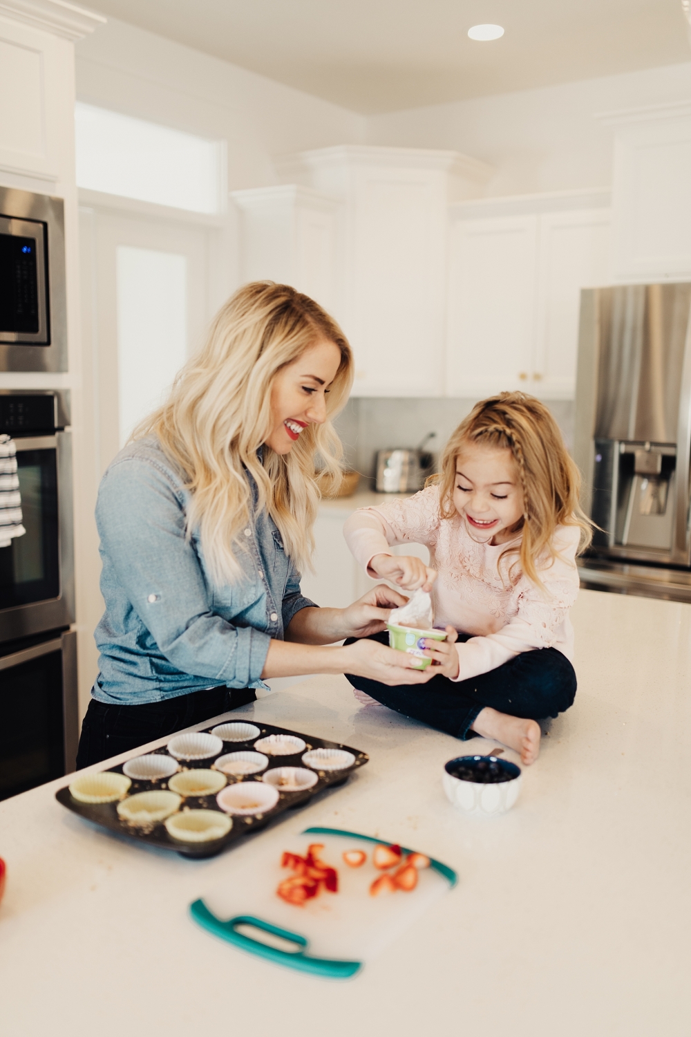 Hey babes! I’m sharing a sweet little recipe today, one that’s really easy and fun to do with the kids but that’s super yummy and healthy too! I don’t know if you remember the yogurt popsicles I shared awhile back? We put a spin on the same ingredients and made yogurt bites!!! I love greek yogurt. It’s healthy, it’s yummy, and my kids love it. Don’t be surprised if I share some more greek yogurt hacks in the future!