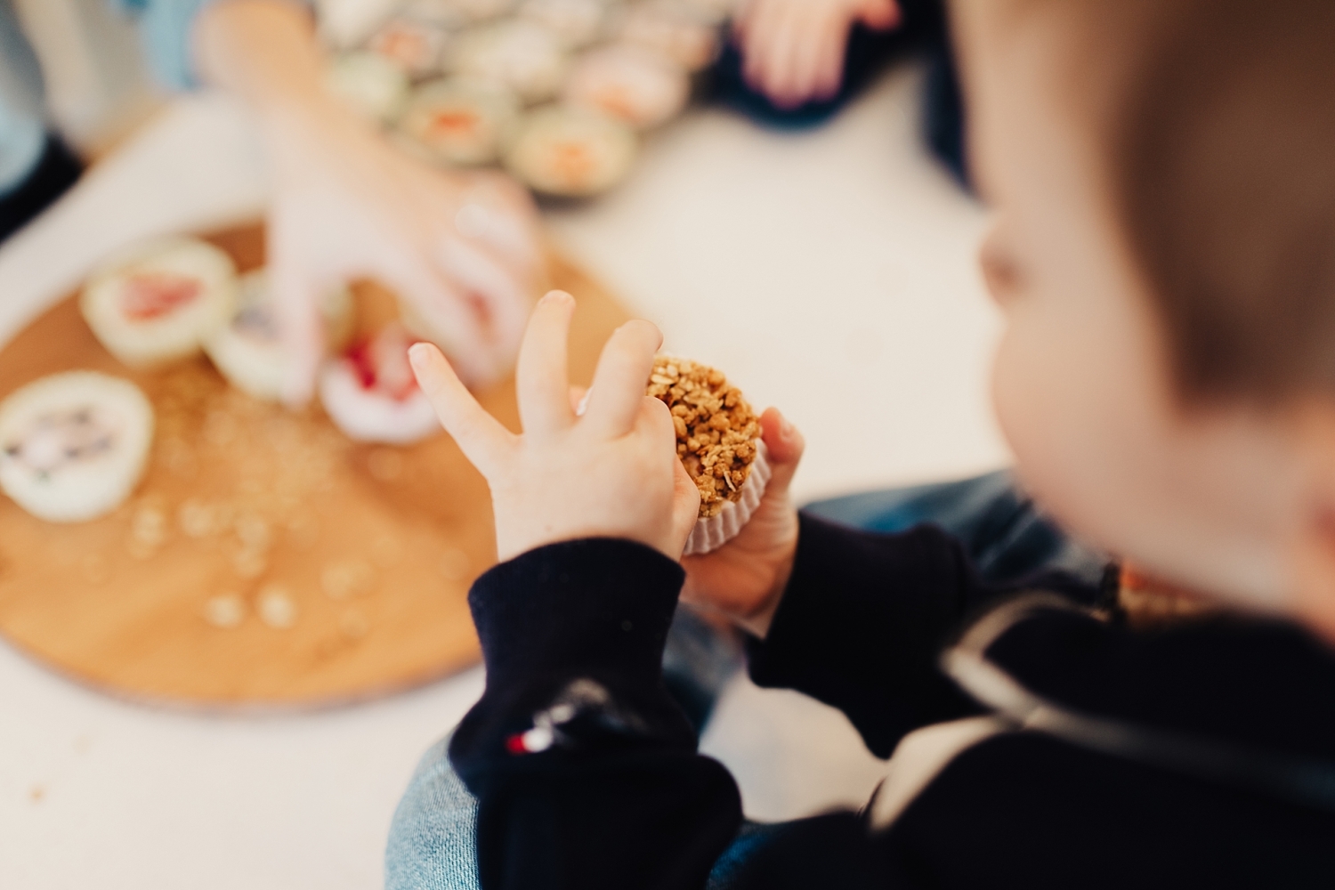 - 2. Fill the bottom layer of the cupcake liner with granola
