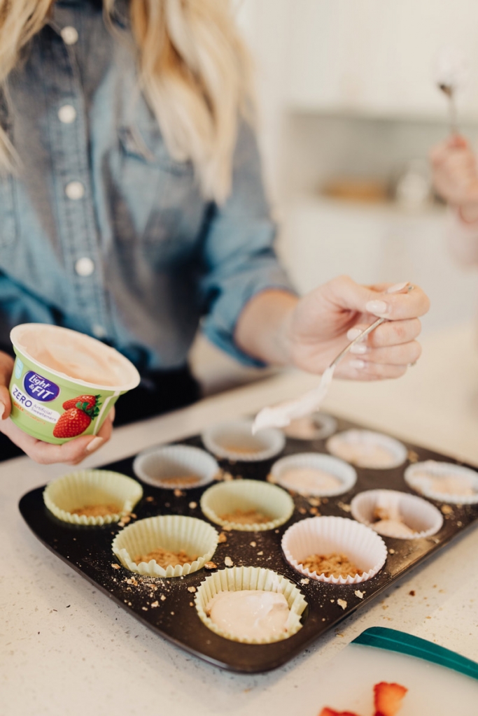 Next, you’re just going to put a large dollop of yogurt in each tin! I told you, it was super easy.