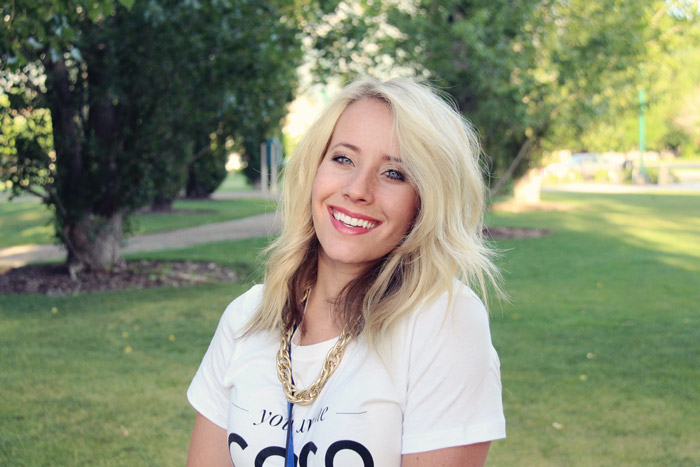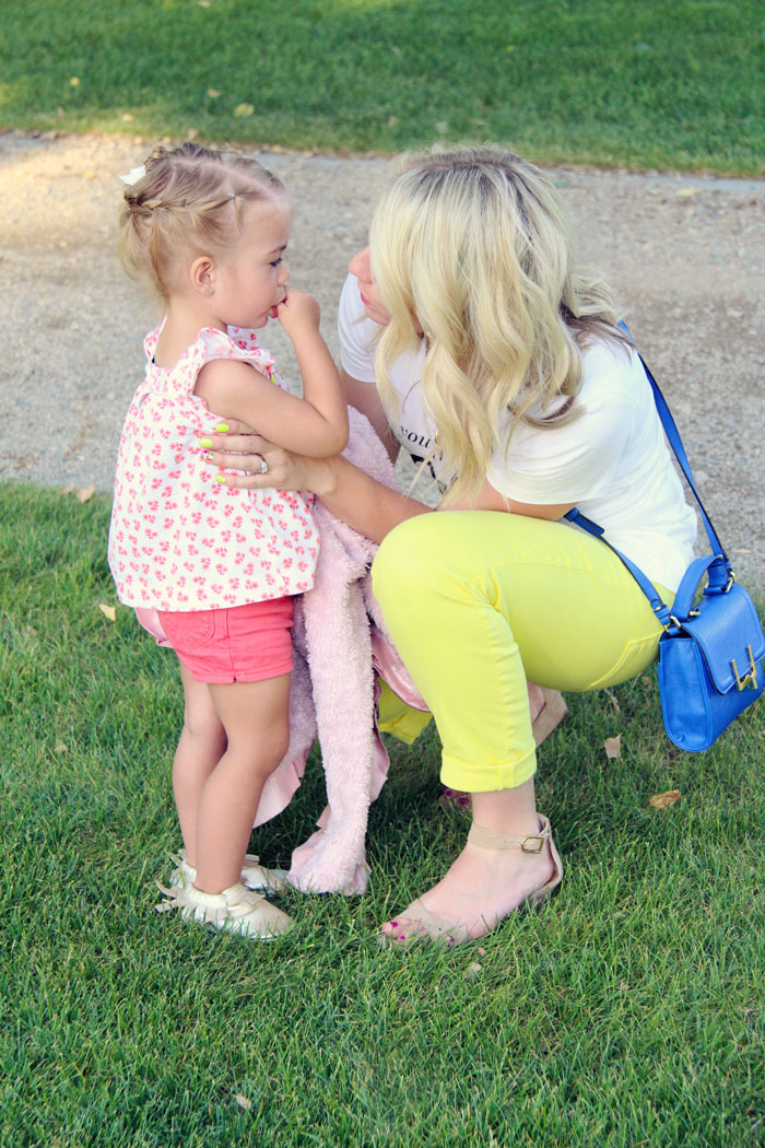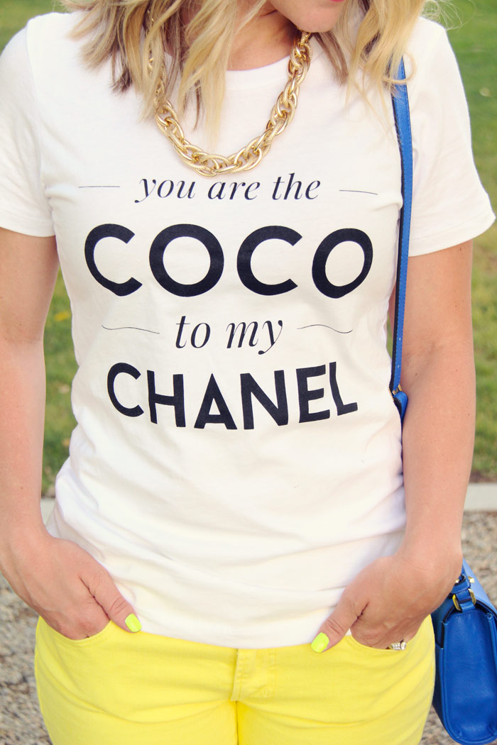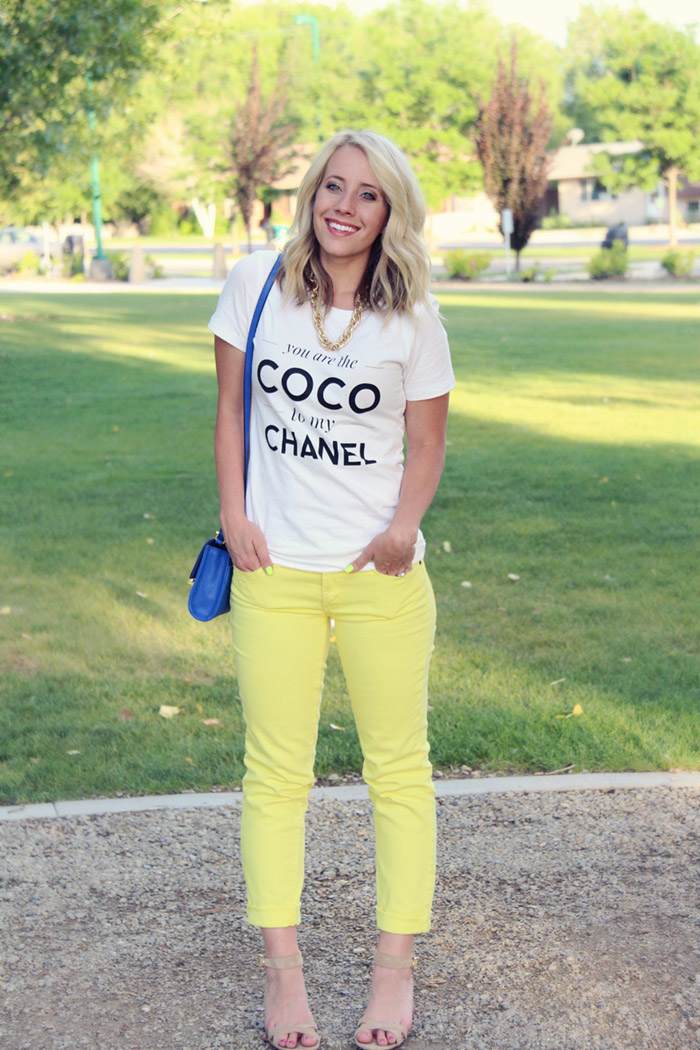 Me: Graphic Tee c/o Style Lately | Blue Bag (sale) | Necklace c/o T&J Designs | Sandals | Yellow Pants (jcrew factory old)