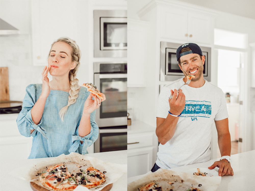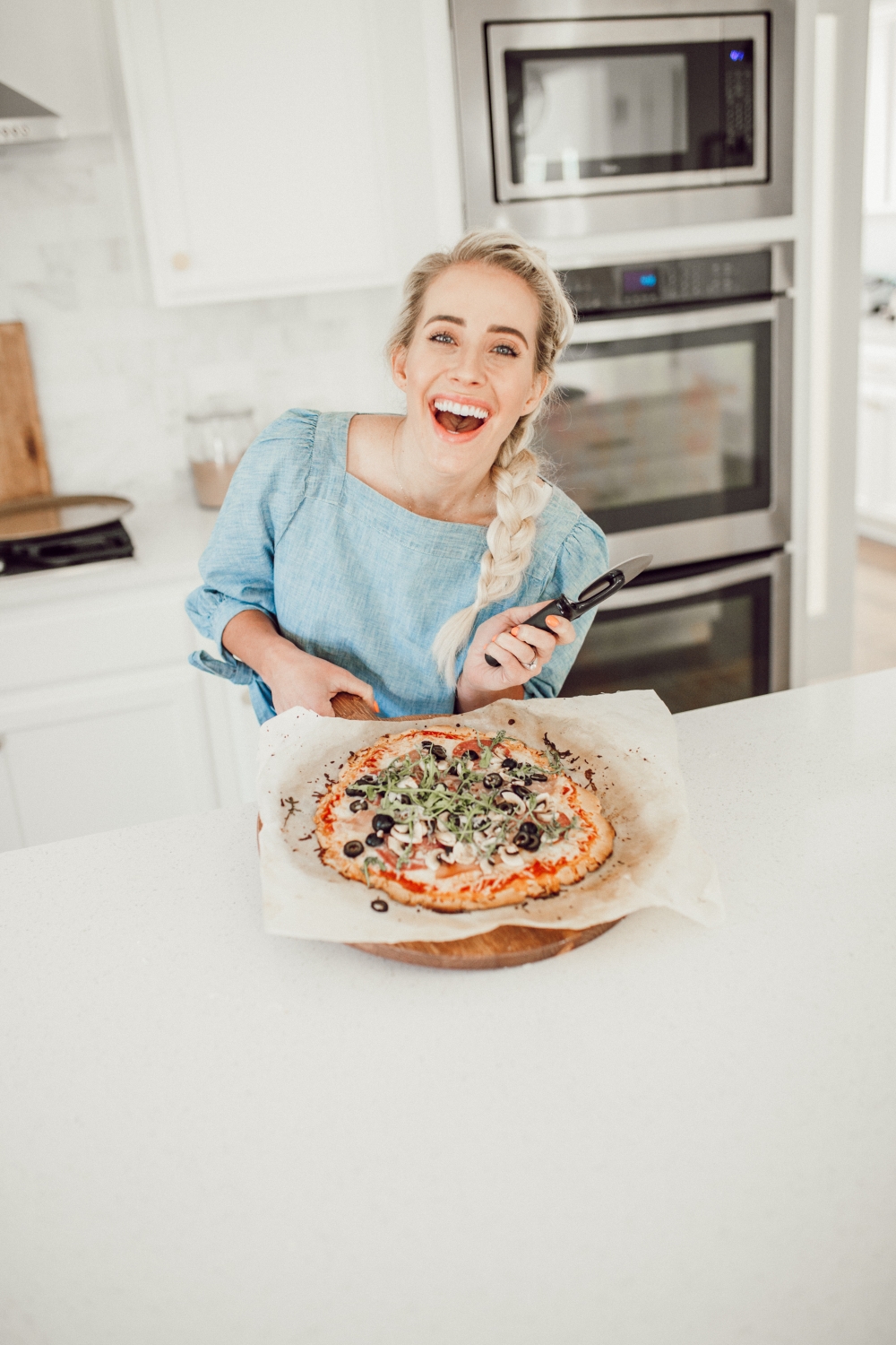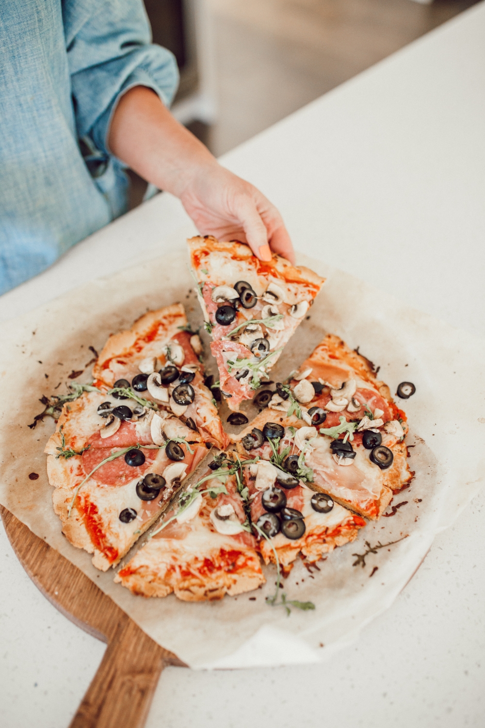 Hey babes! I’m so excited to finally share this low-carb and gluten-free pizza crust recipe with you, it’s SOOO GOOOOD!!!! Just a quick recap: Brian and I started the Keto diet back in June and we were steadfast for a little over a month. I did a triathlon sprint (guys I took THIRD place in my age division. Why I haven’t bragged about it more I have no idea haha!) while in Michigan visiting family and fell out of ketosis with the carbs I took the night before and right after the race. I tried and tried to get back into it but just didn’t have it in me to follow the strict meal plan it requires those first few days. So late one night the chocolate chip cookie cravings came and we just fell off the wagon. We aren’t doing Keto anymore but hopefully when things settle down and I can trust myself to commit, we’ll get back into it – I really loved the diet. It was easy and I didn’t feel like I was really sacraficing anything. We found a lot of super yummy recipes and I was happy and totally satisfied on it. It’s just hard to get into. And if you get out if it you’ve gotta be strict with what you’re eating until you can get back in. I followed the fit2fat2fit meal plan for a week and then figured out my macros so I could switch up what I was eating and truly loved Keto!!